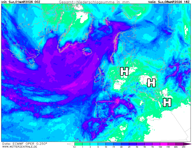 Dankzij, of ondanks, de hogedrukgebieden blijft het in een groot deel van het centrale/oostelijke deel van Europa de komende week droog. Zoals hierboven vermeld, lopen de neerslaghoeveelheden in het zuidwesten van Europa op tegen het einde van de week. Ook in Noorwegen valt er de komende week veel regen. Niet alleen bij ons zal het zacht zijn, maar in een groot deel van Centraal-Europa (en bij uitbreiding ook de Balkan).