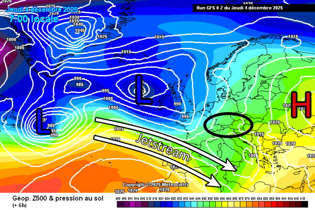 Momenteel is het relatief rustig winterweer in de Alpen. Het gebergte ligt tussen een hoog- en lagedrukgebied, waardoor er niet veel animo komt in het weer. De straalstroom duikt ook redelijk zuidelijk, hierdoor wordt er geen zachte lucht aangevoerd naar de Alpen. Het is voornamelijk bewolkt weer met af en toe een beetje sneeuwval. In de hogergelegen skigebieden daalt de temperatuur zo vlotjes tot onder het vriespunt. In de dalen zitten we nog met positieve temperaturen. Het weerbeeld staat komende week wel een verandering te wachten en het ziet er niet positief uit.